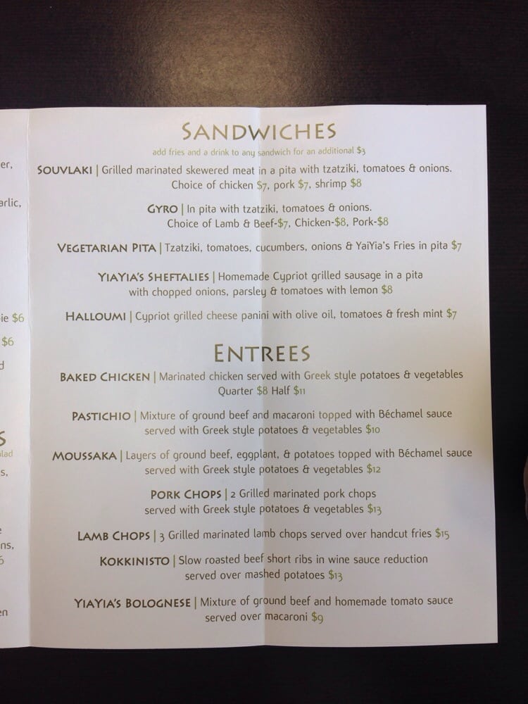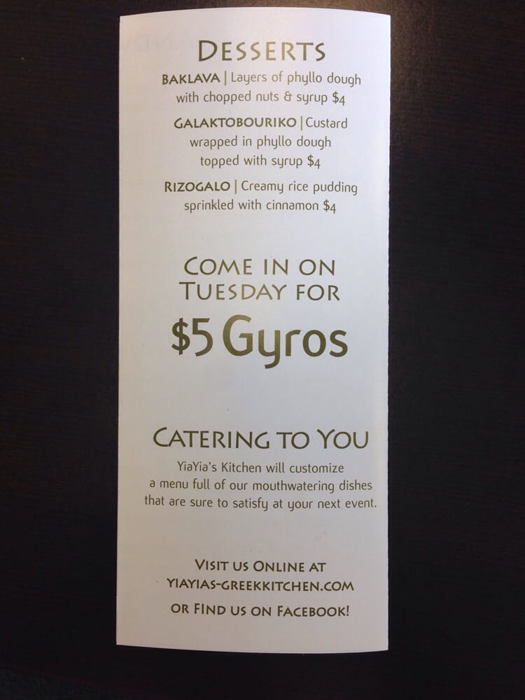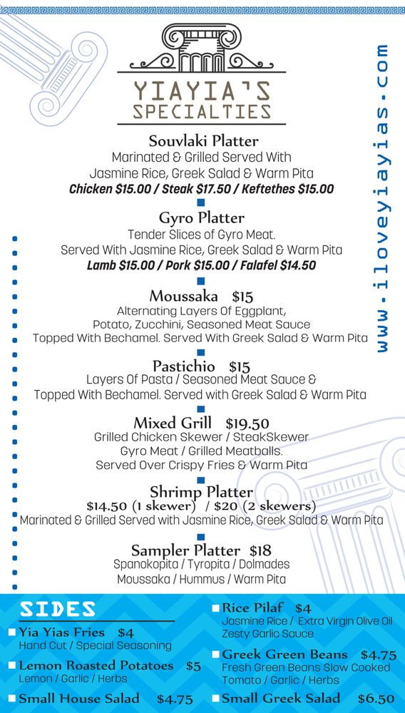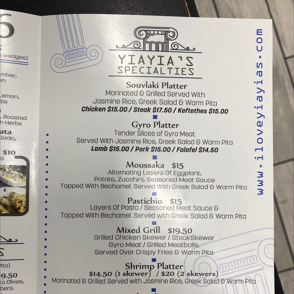 Yia Yia’s Kitchen Menu (2025 Update)